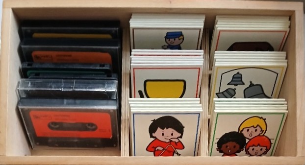 Dit is een educatief luisterspel met 6 cd's en 6 x 6 kaartjes met de tekening op. De gebruiker moet het kaartje zoeken bij wat men hoort.