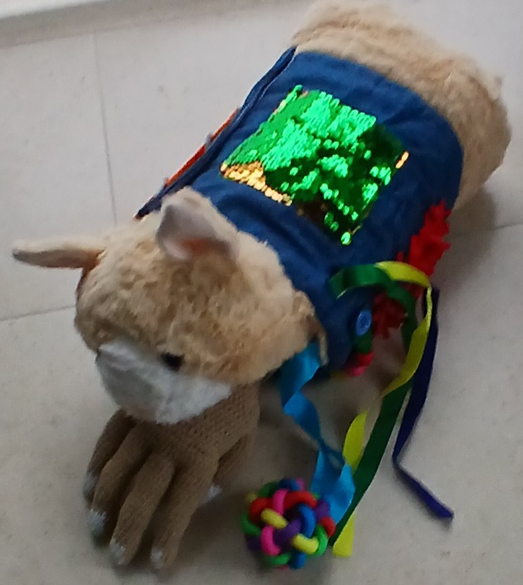- als handenmop -> men kan de handen erin steken om warme handen te krijgen, om iets zachts te hebben, om binnenin te friemelen met het balletje