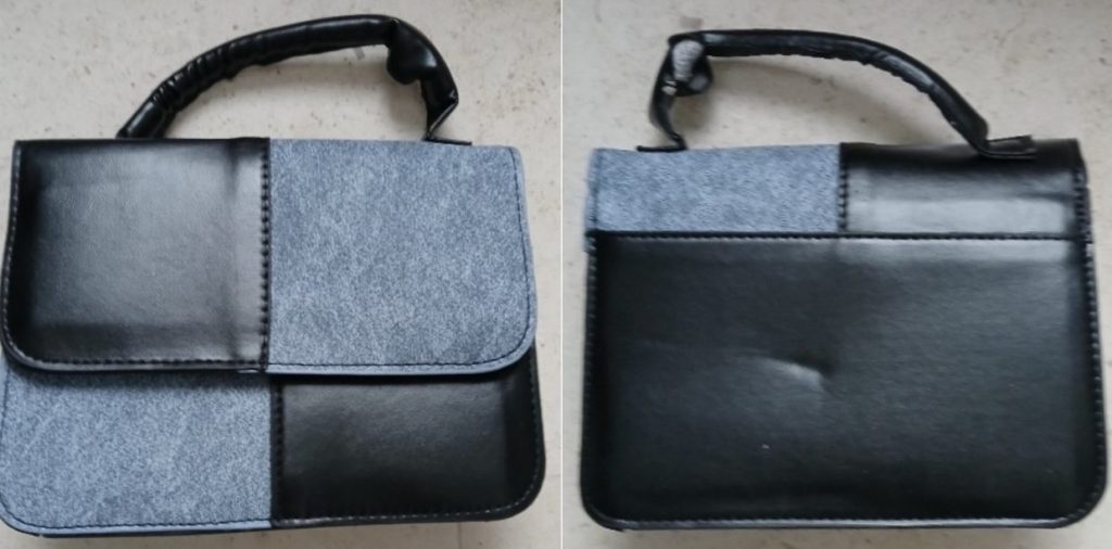 AF-19-blauw hand/schoudertasje met klep voor gsm….  H 20cm x Br 20 cm x D 7,5 cm -> 10,00€ -> beschadigd -> solden nu 3€/gratis voor vrijwilligers