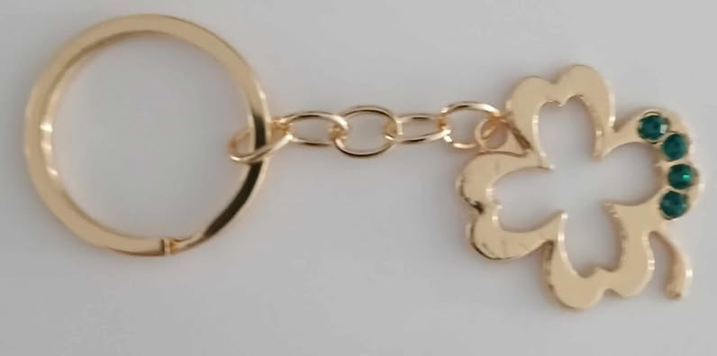 AS-03-klavertje-4 -3 -> sleutelhanger - goudkleurig -> 3,00€-> solden nu 1,50€/gratis voor vrijwilligers