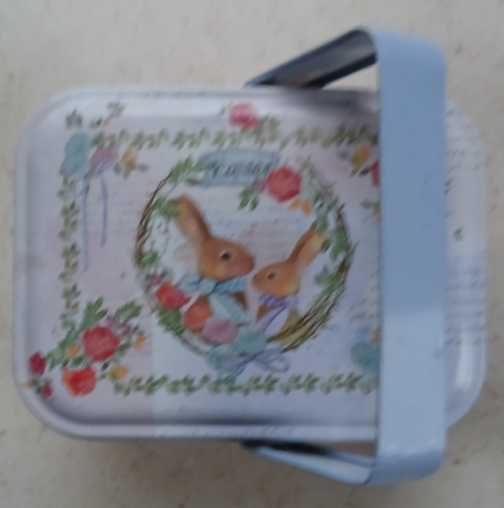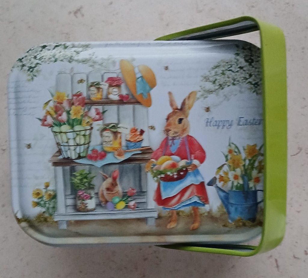 AH-01-Zeer mooie metalen bord met paashaas 20 x 30cm -> 6,00€ excl. verzendingAH-02-Zeer mooie metalen bord schommel 20 x 30cm -> 6,00€ excl. verzendingAH-03-Geplastificeerde, canvas poster, retro met paashaas 30 x 42cm, geleverd in een plastieken koker -> 6,00€ excl. verzendingAH-04-zeer mooi blikken paasdoosje br 8 x l 10,50 cm x h 6 cm -> 6.00€ excl. verzendingAH-05-zeer mooi blikken paasdoosje roze br 8 x l 10,50 x h 6 cm -> 6.00€ excl. verzendingAH-06-zeer mooi blikken paasdoosje blauw br 8 x l 10,50 x h 6 cm -> 6.00€ excl. verzending20-zeer mooi blikken paasdoosje (rood) br 8 x l 10,50 x h 6 cm -> 6.00€ excl. verzending21-zeer mooi blikken paasdoosje (groen) br 8 x l 10,50 x h 6 cm -> 6.00€ excl. verzending22-zeer mooi blikken paasdoosje (lichtblauw) br 8 x l 10,50 x h 6 cm -> 6.00€ excl. verzending23-zeer mooi blikken paasdoosje (bleek roze) br 8 x l 10,50 x h 6 cm -> 6.00€ excl. verzendingAH-07-metalen, zittend konijntje 4,20 x 6 cm, met kleefstripje voor bvb. dasboard van auto -> 3,00€ excl. verzendingAH-08-Blikken paaseitje nr. 1 - 6,5 x 4,5 cm -> 3,00€ excl. verzendingAH-09-Blikken paaseitje nr. 2 - 6,5 x 4,5 cm -> 3,00€ excl. verzendingAH-10-Blikken paasei nr. 3 - 6,5 x 4,5 cm -> 3,00€ excl. verzendingAH-24-Blikken paasei nr. 4 - 6,5 x 4,5 cm -> 3,00€ excl. verzendingAH-25-Blikken paasei nr. 5 - 6,5 x 4,5 cm -> 3,00€ excl. verzendingAH-26-Blikken paasei nr. 6 - 6,5 x 4,5 cm -> 3,00€ excl. verzendingAH-12-Acryl 3 konijntjes hangbord 20cm ->4,00€ excl. verzendingAH_13-Acryl 2 paaskonijntjes voor in de grond 13 x 14 (19) cm ->4,00€ excl. verzendingAH-14-Acryl Paashaas met gekleurde eitjes hangbord 20 cm ->4,00€ excl. verzendingAH-17-Acryl Mickey Mousse paasei hangbord 15 cm -> 4,00€ excl. verzendingAH-18-2 porceleinen blauwe haasjes met pelskraagje en een gouden ei op de rug 11 & 8 cm hoog -> 8,00€ excl. verzendingAH-28-Metalen lentebloemen hangbord 20 x 30 cm -> 6,00€ excl. verzendingAH-29-Acryl vergeet-me-nietjes hangbord 20 x 14 cm -> 4,00€ excl. verzendingAH-31-zeer mooie linnen tas met schouderriem met vergeet-me-nietjes 39 x 38 cm zonder schouderriem -> 7,00 excl. verzending